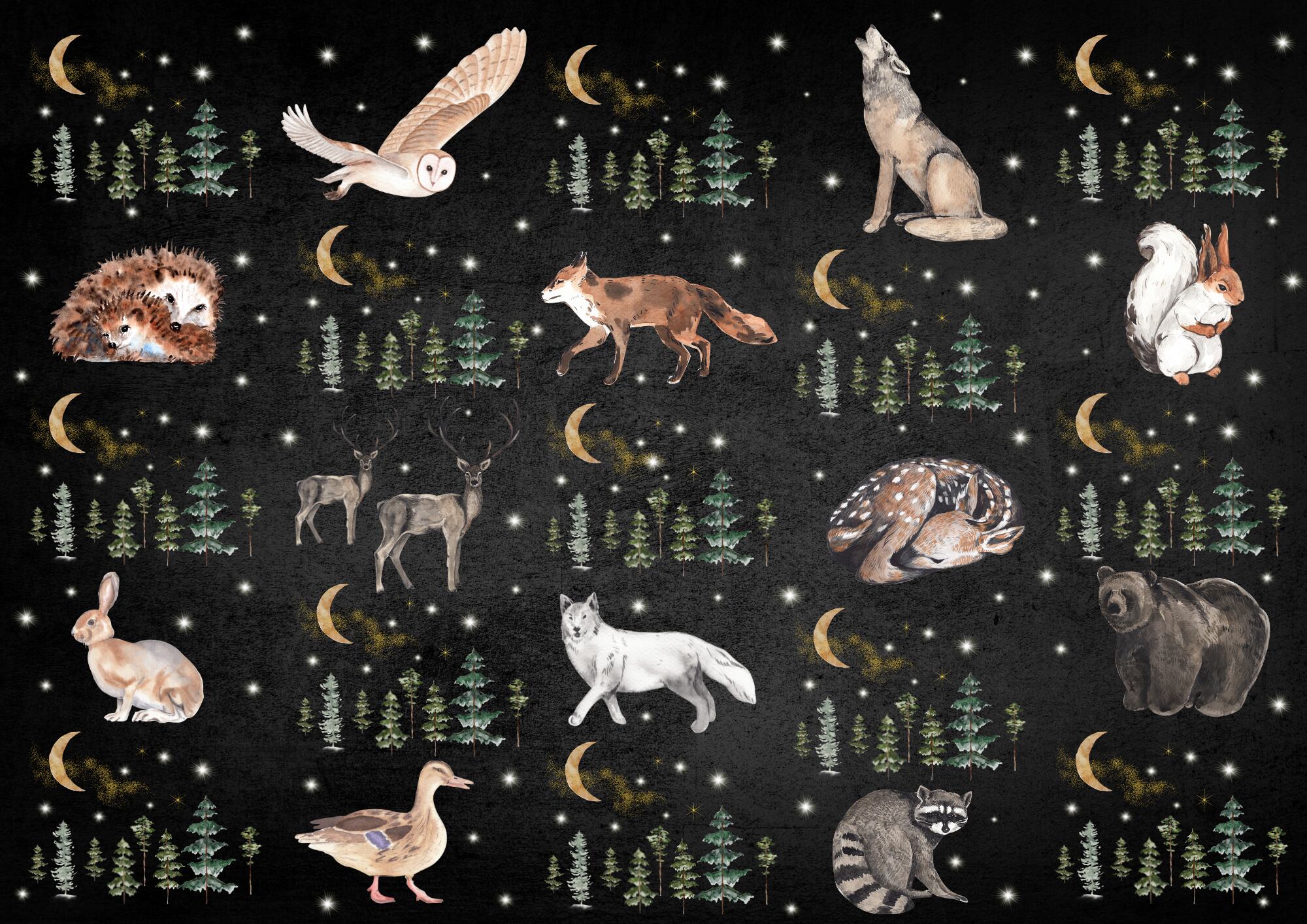 森に棲む動物たちの夜をイメージしたデザインペーパーです。
