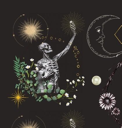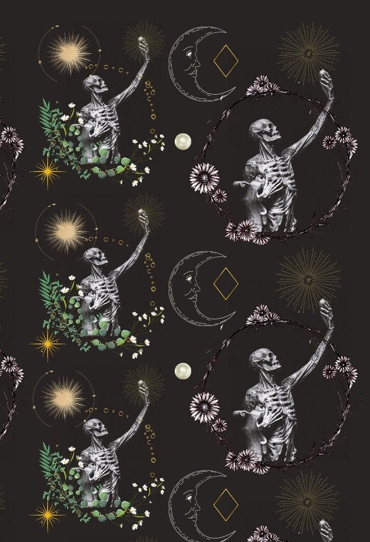 真っ黒の紙にほんのりと浮かび上がる骸骨がロマンチックなペーパーです。