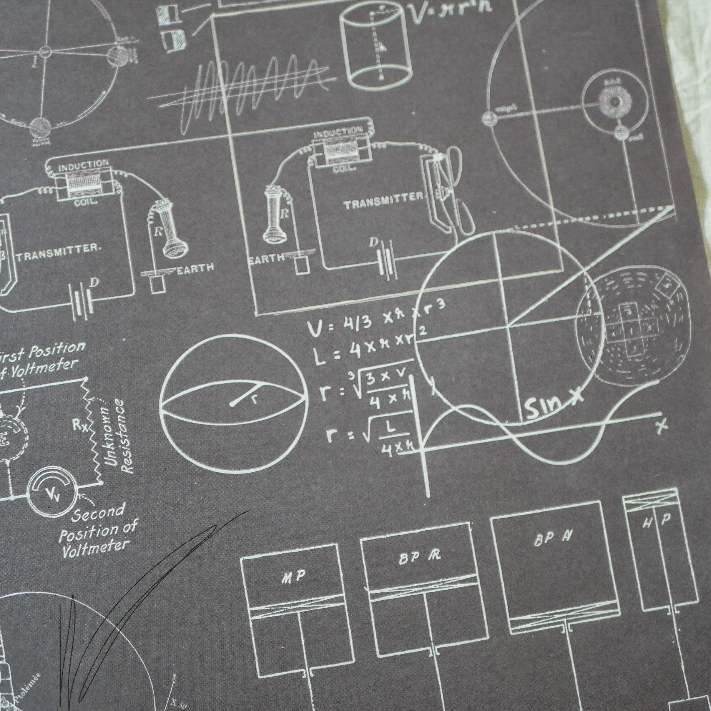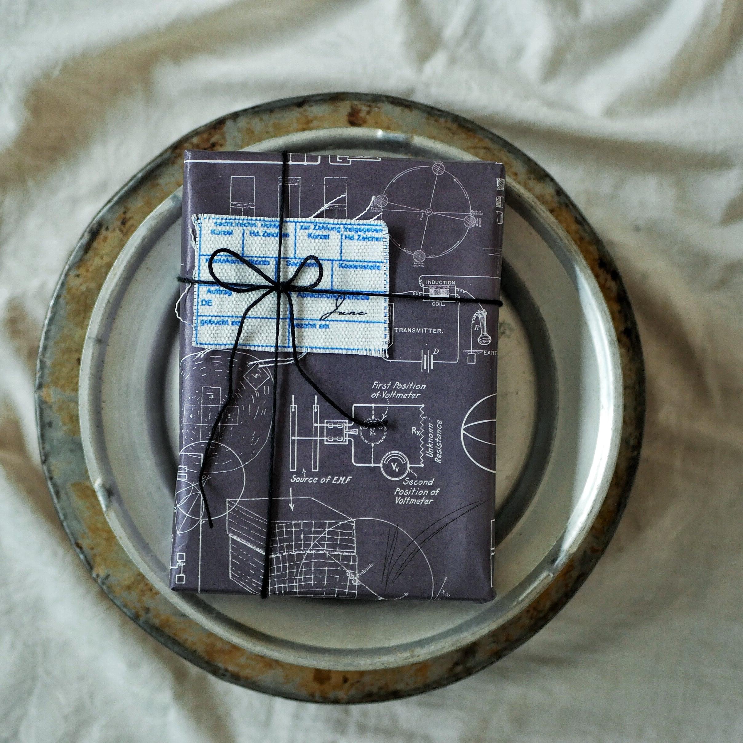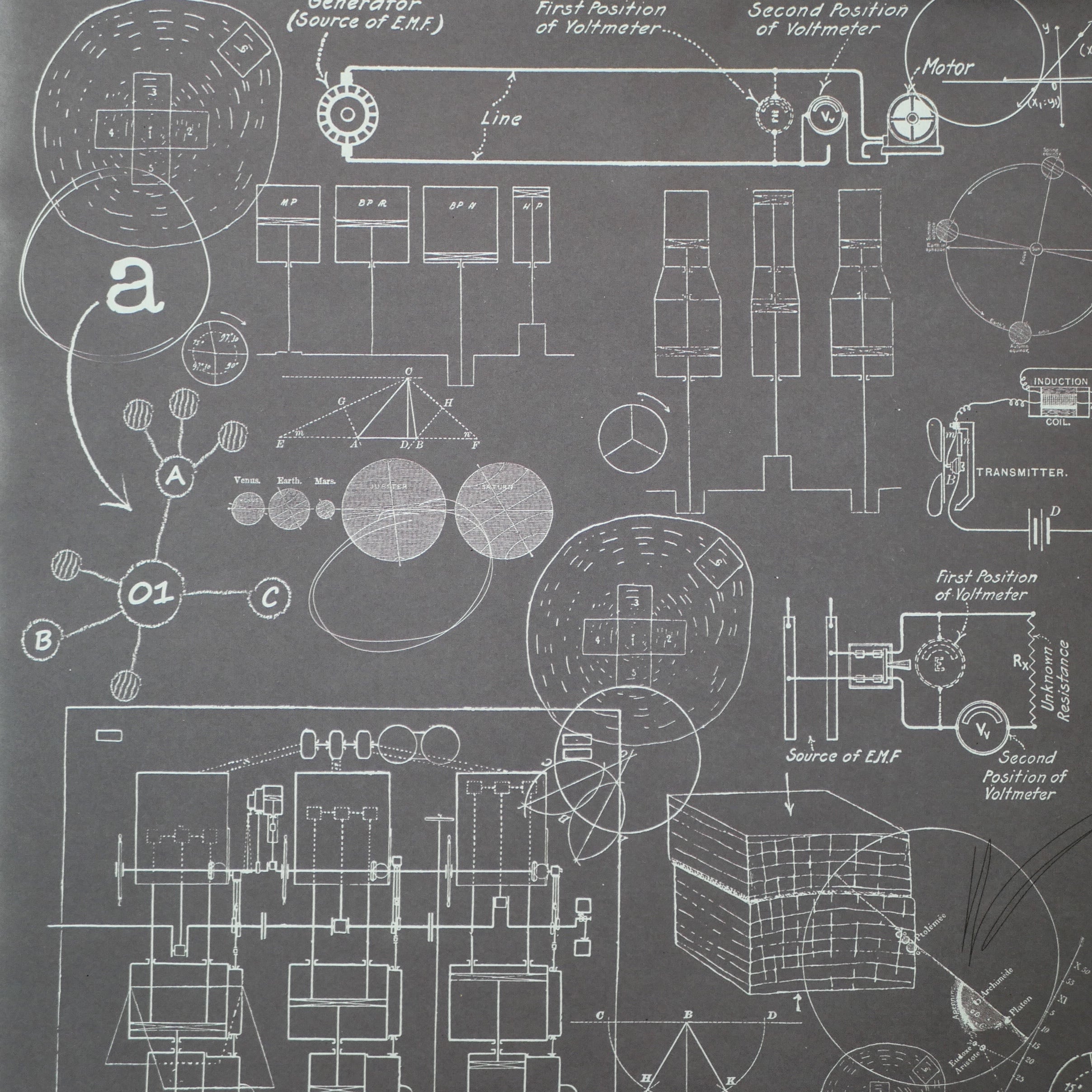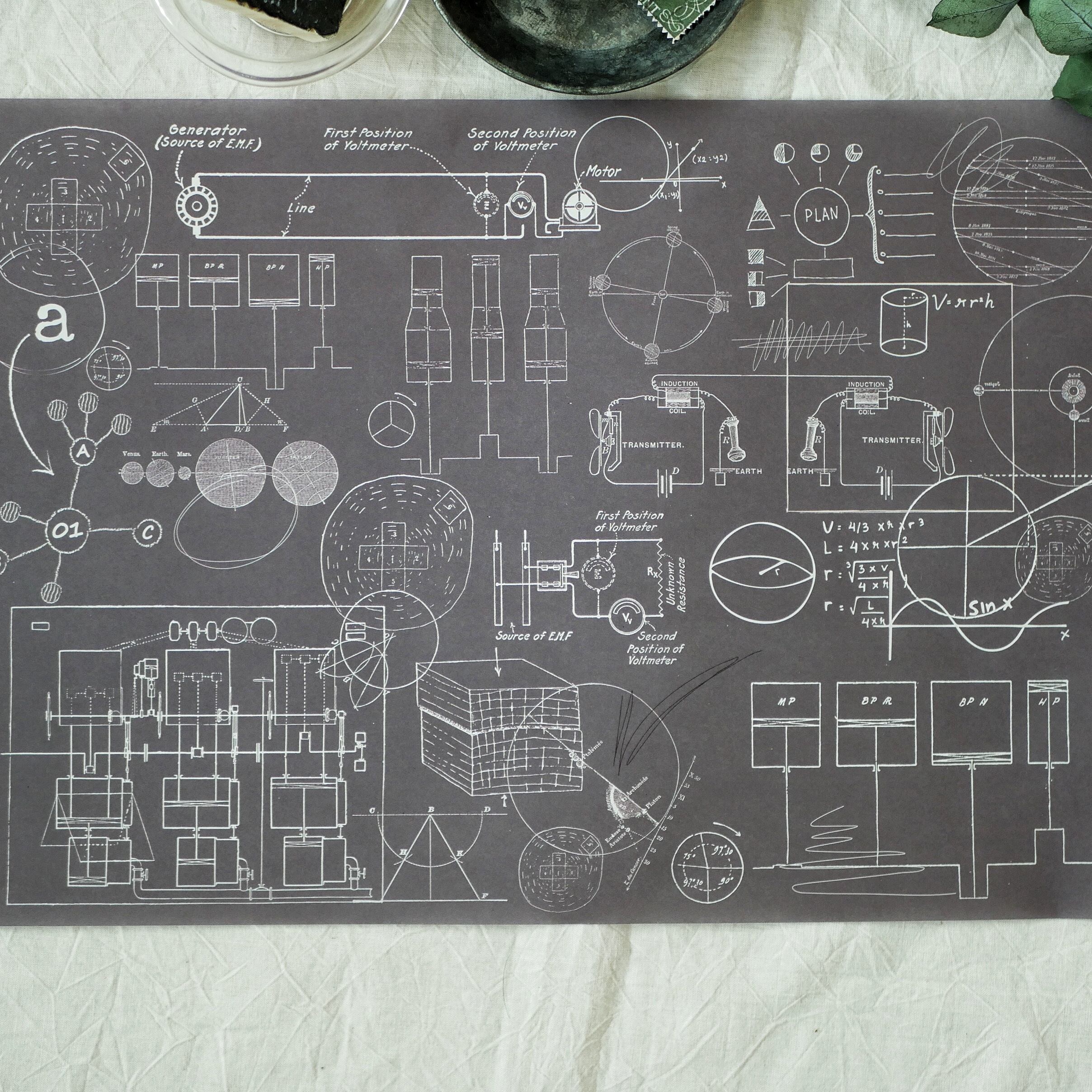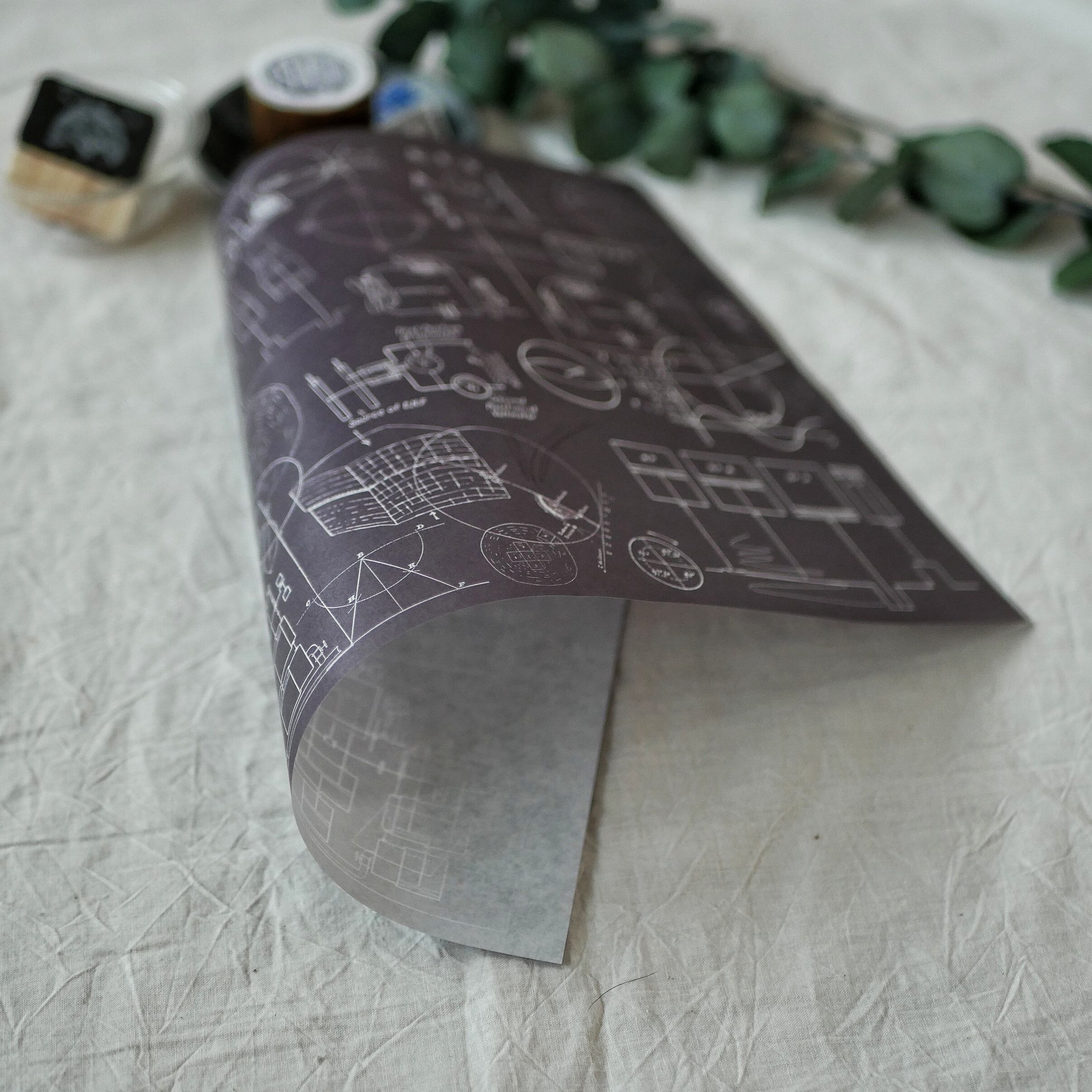 紙一面に様々な図式や記号、アルファベットなどをプリントしたデザインペーパー。