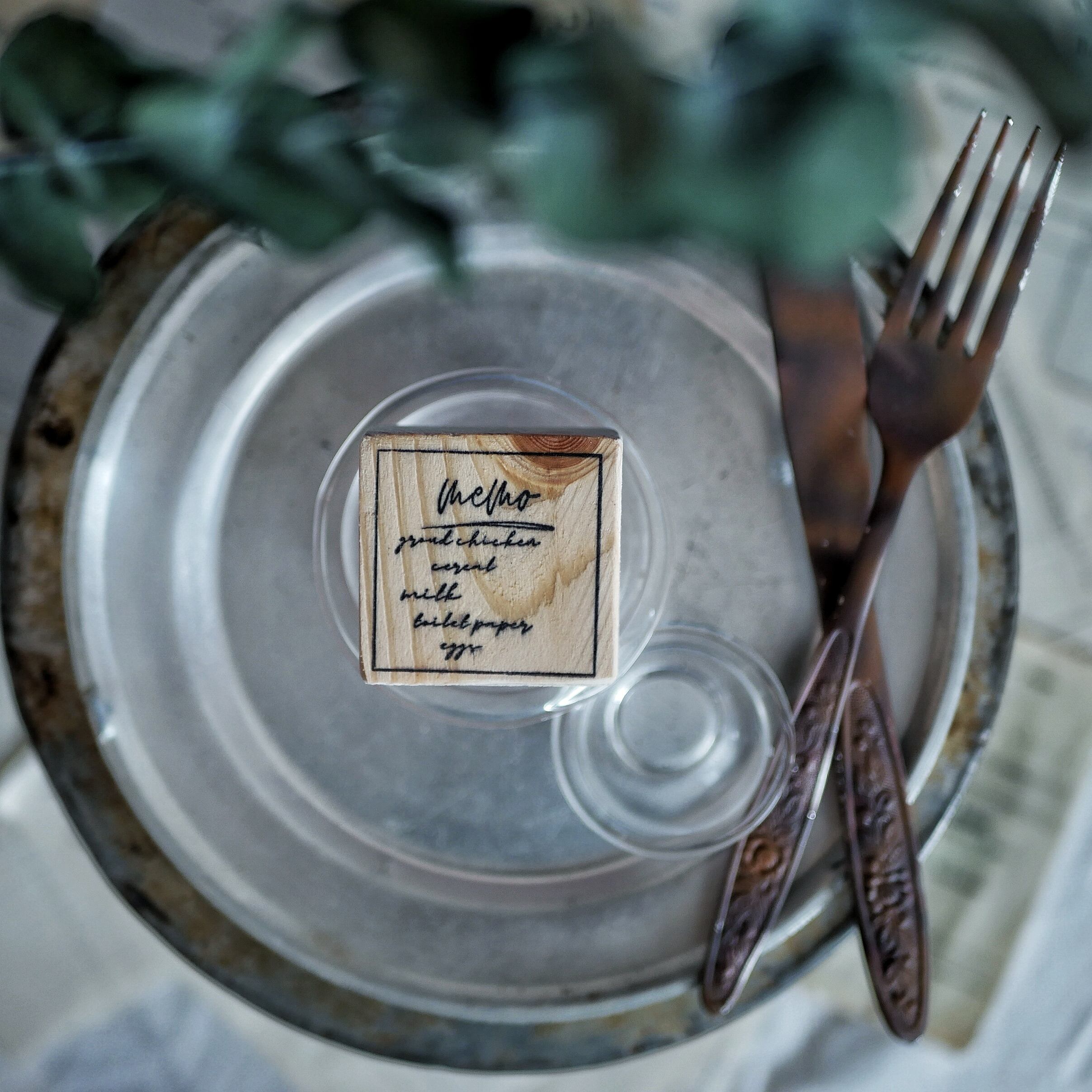 身近なモノをメモしたモノを木製スタンプにしました。