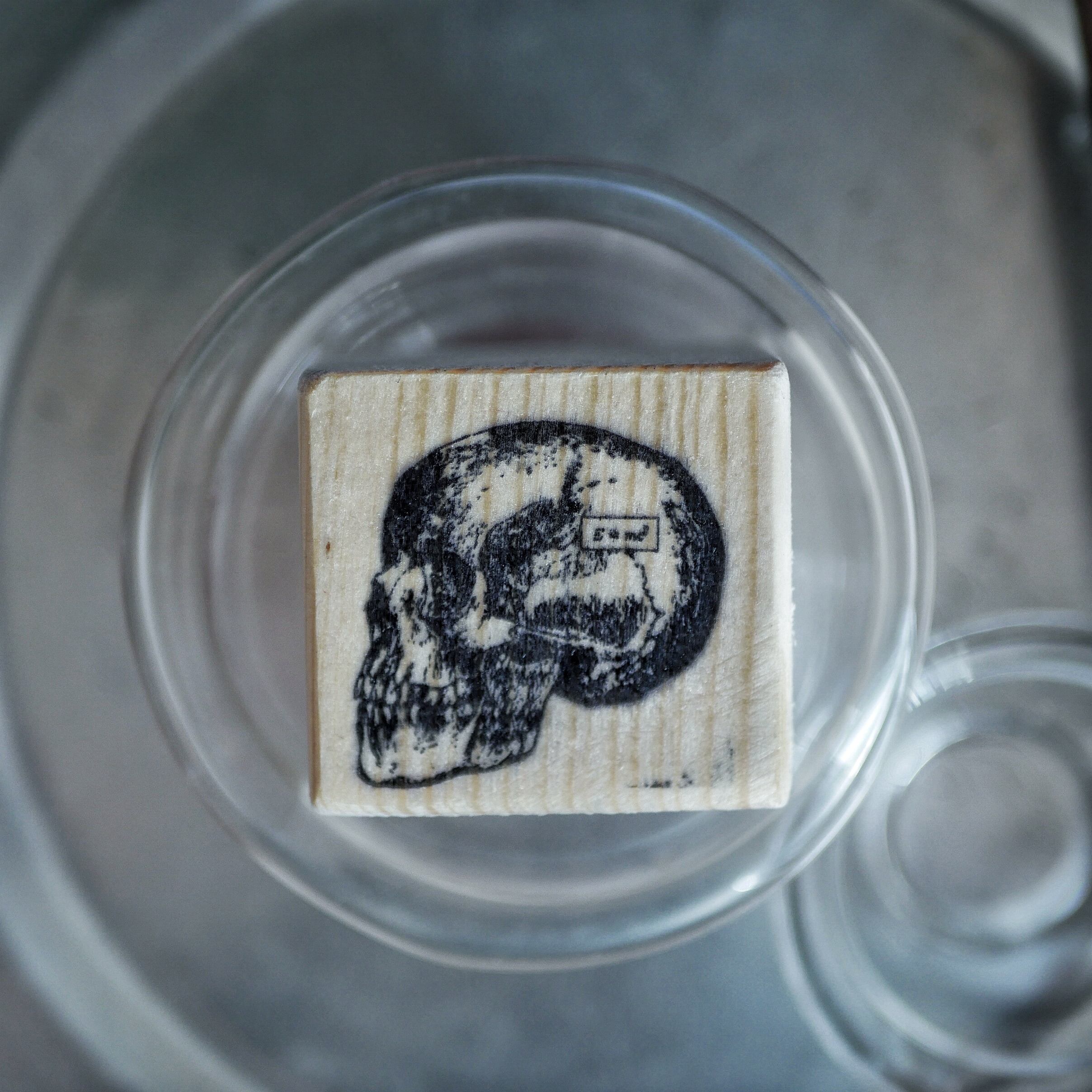 アインシュタインの頭蓋部分を連想させる木製スタンプを制作しました。