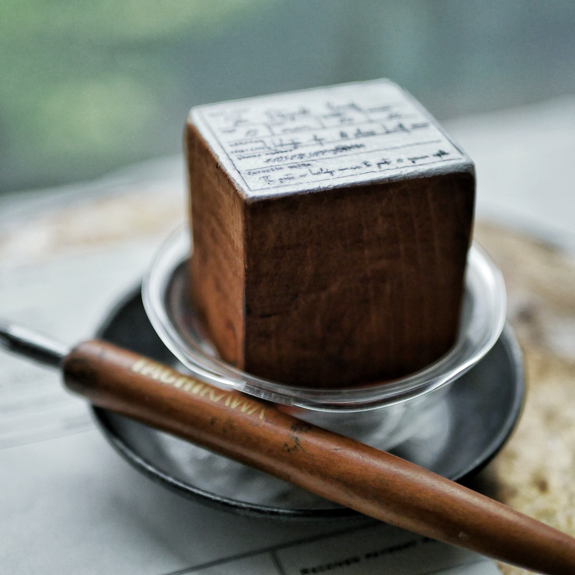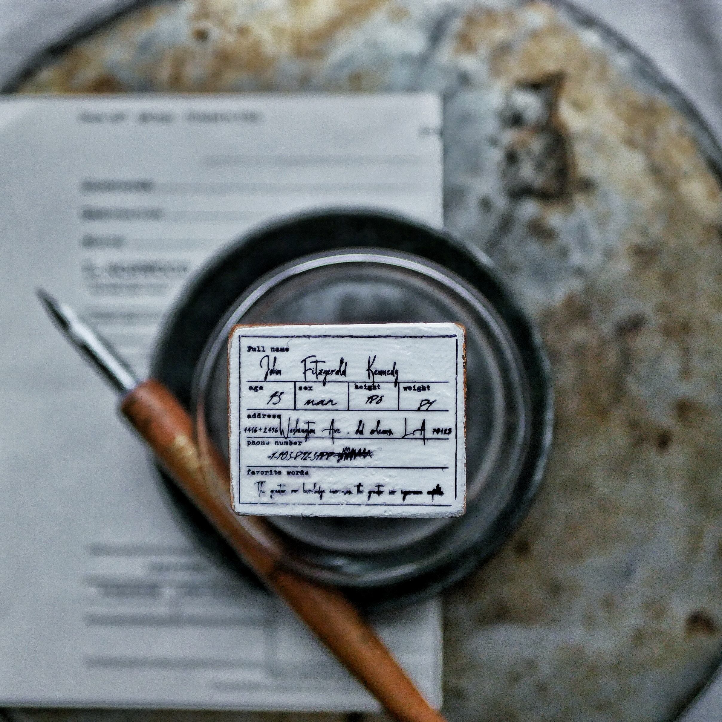 プロフィール欄に書かれた文字は、手書き風のフォントにして『いかにも』な雰囲気に仕上げた、木製スタンプです。