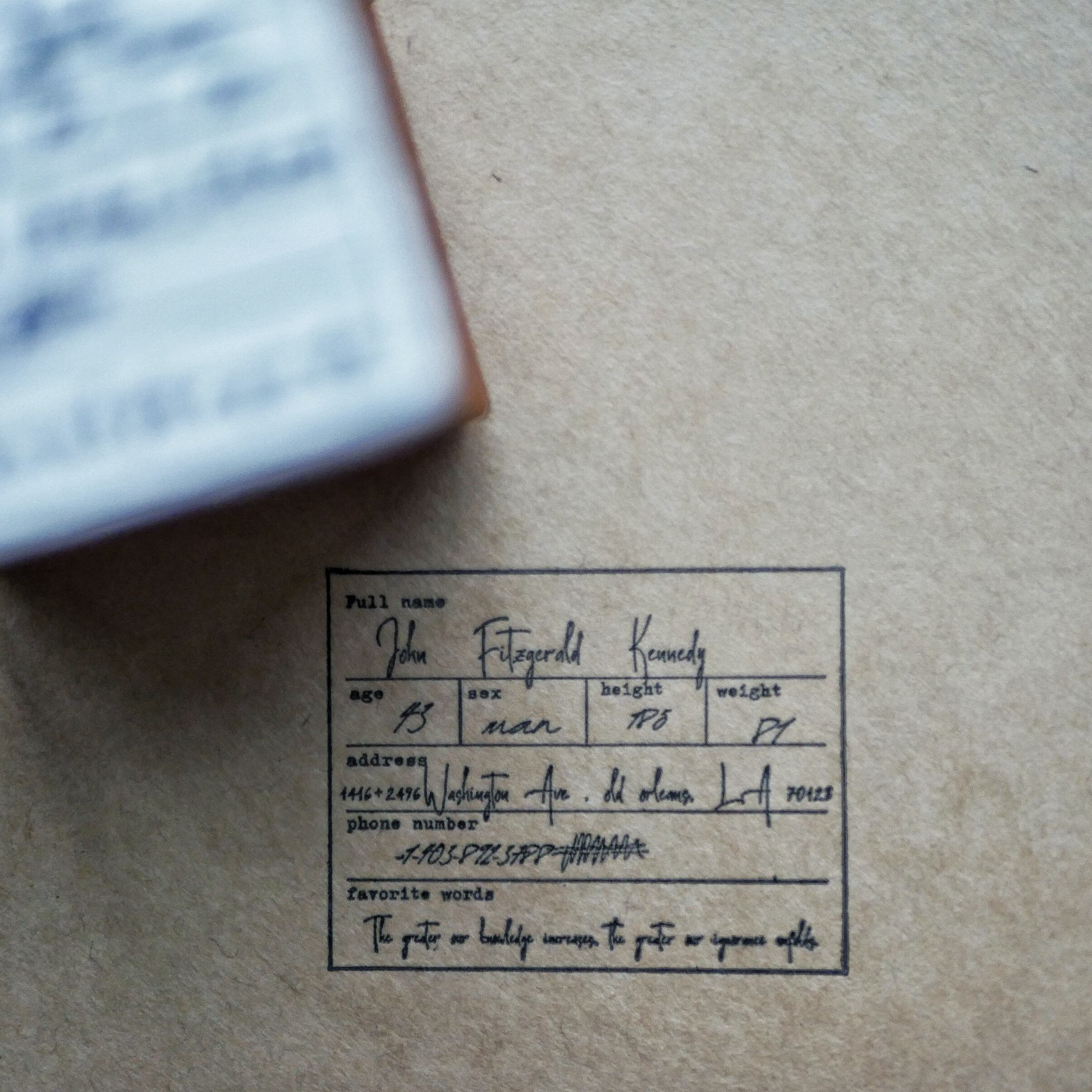 彼のプロフィールを事実と空想を織り交ぜながら制作したスタンプ。