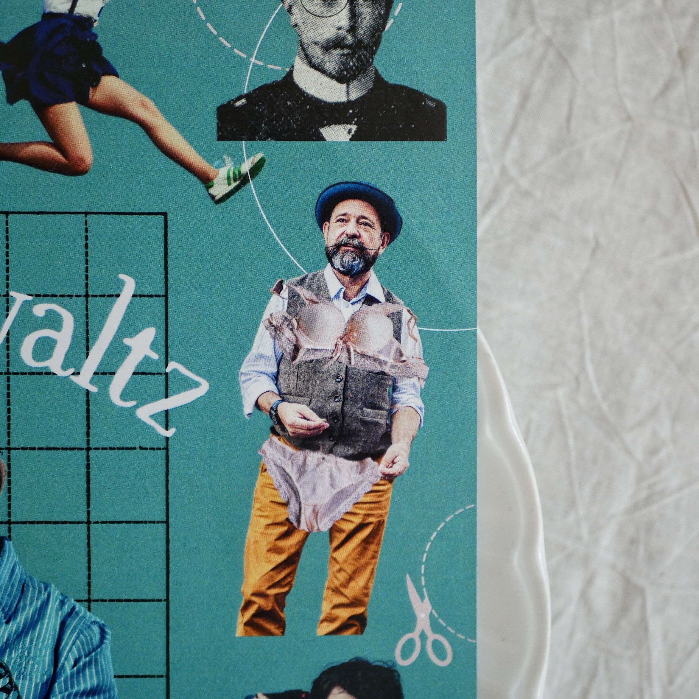 そんな男性の周りに、本を読むおじいさんや宇宙飛行士、弧を描くようにジャンプしてる女の子など....デザインペーパー上に沢山の人物をキャスティングしました。