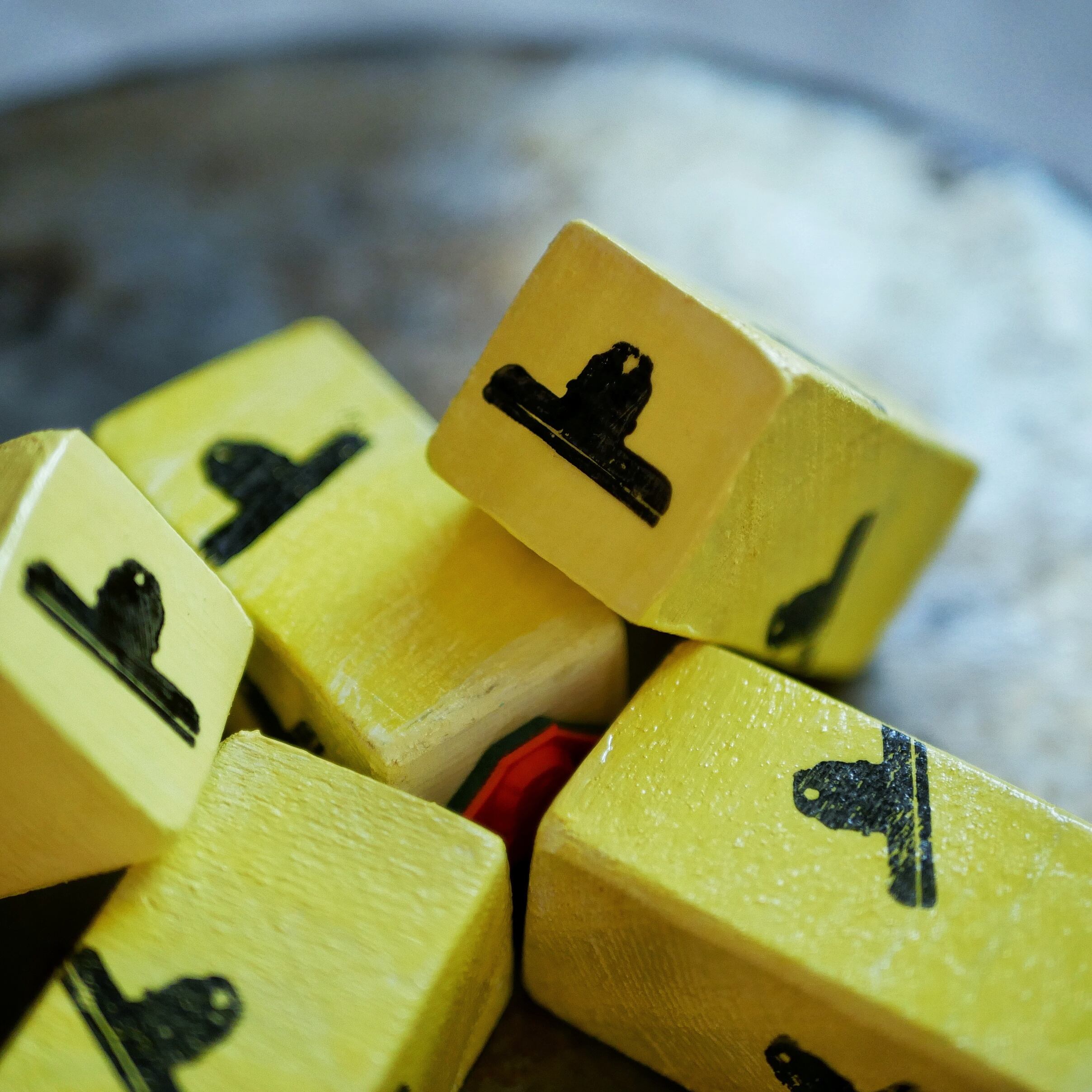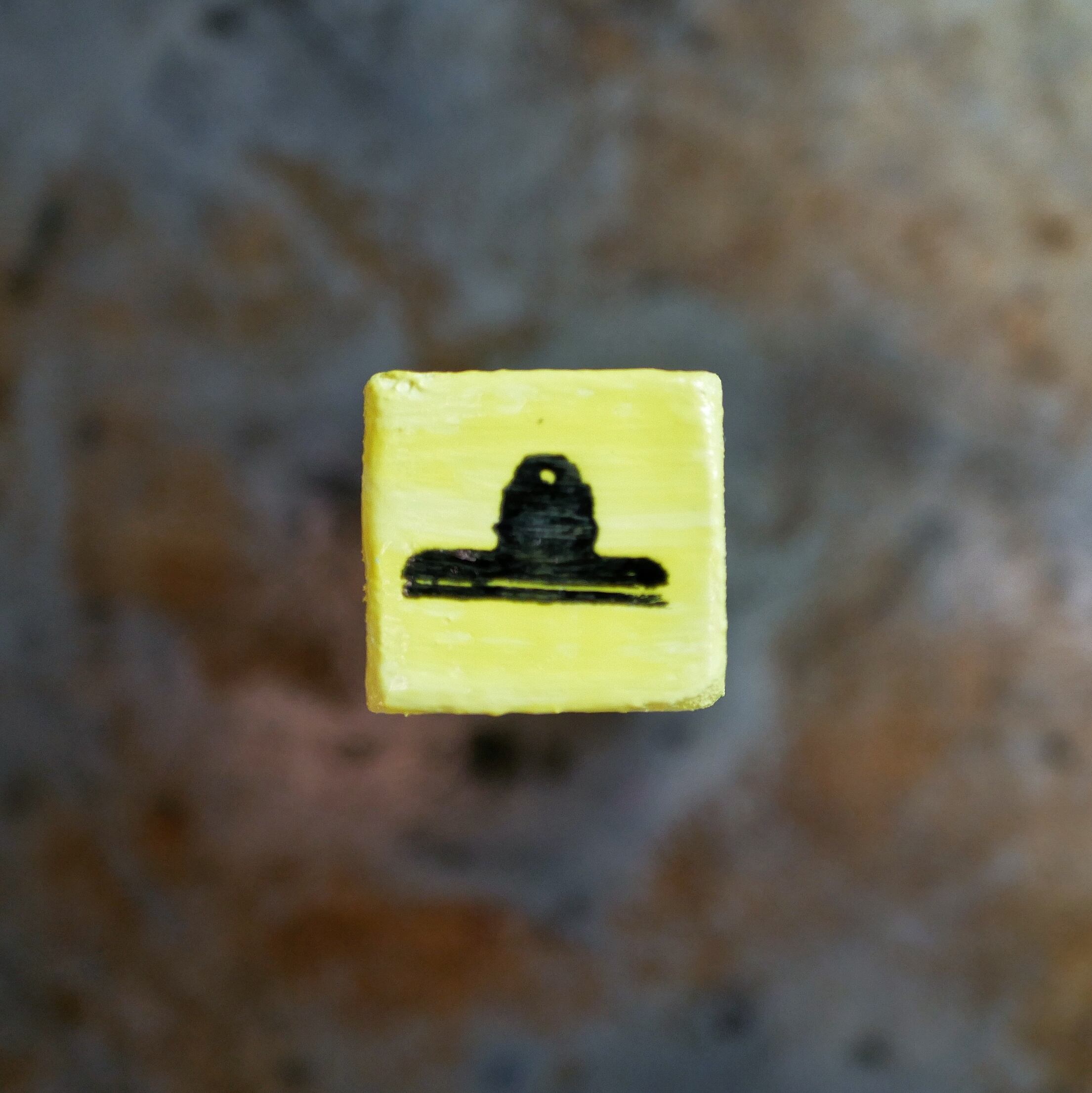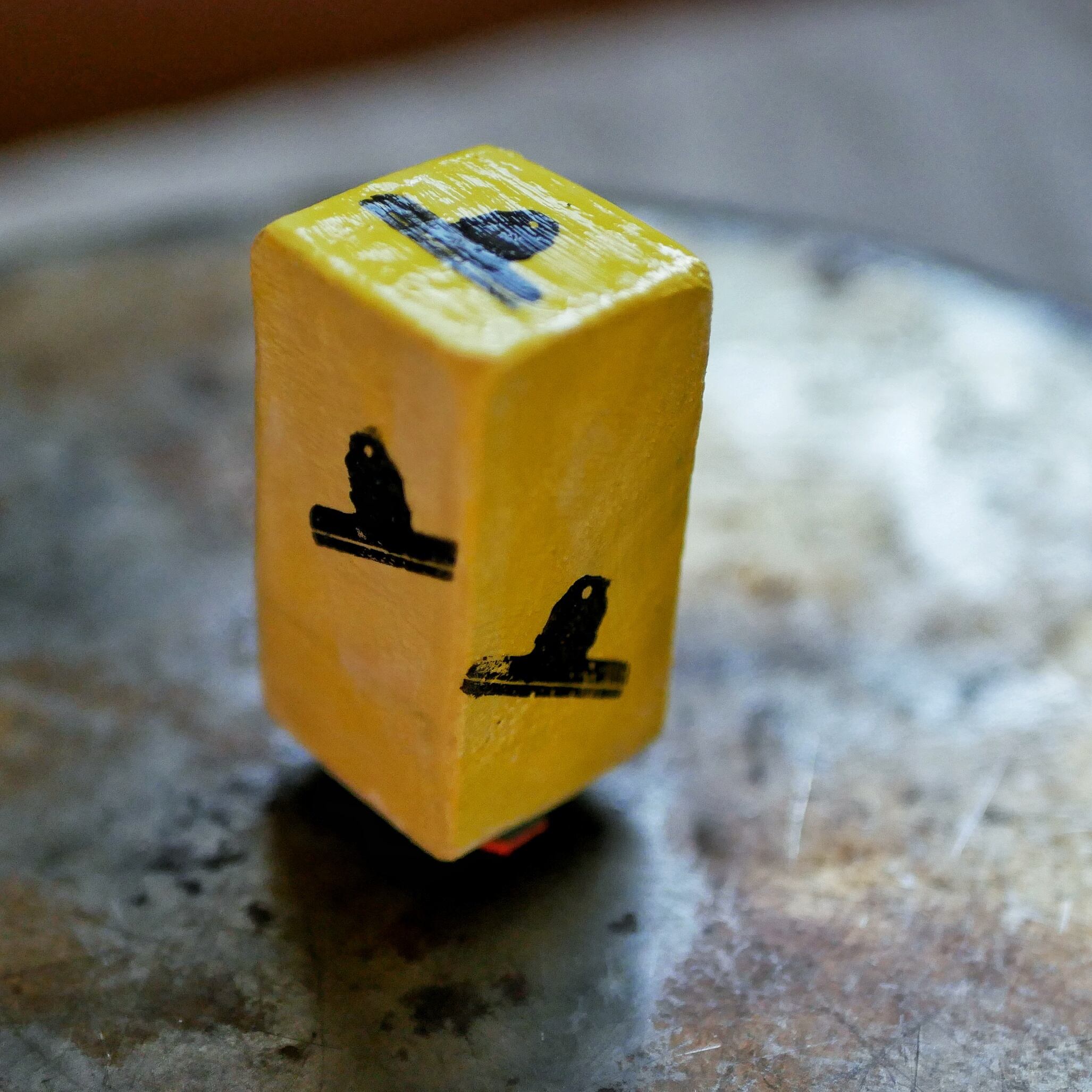 持ち手部分は、淡いタマゴ色に塗装した木製スタンプです。